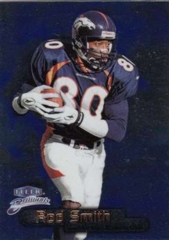 The Rod Smith 1998 Fleer Brilliants #86B Blue card is 1 of 5 Rod Smith's card variations in the 1998 Fleer Brilliants set being tracked by Sports Card Investor, including #86 Base, #86G Gold /99, #86TG Gold /99, and #86TG 24-Karat Gold /24.