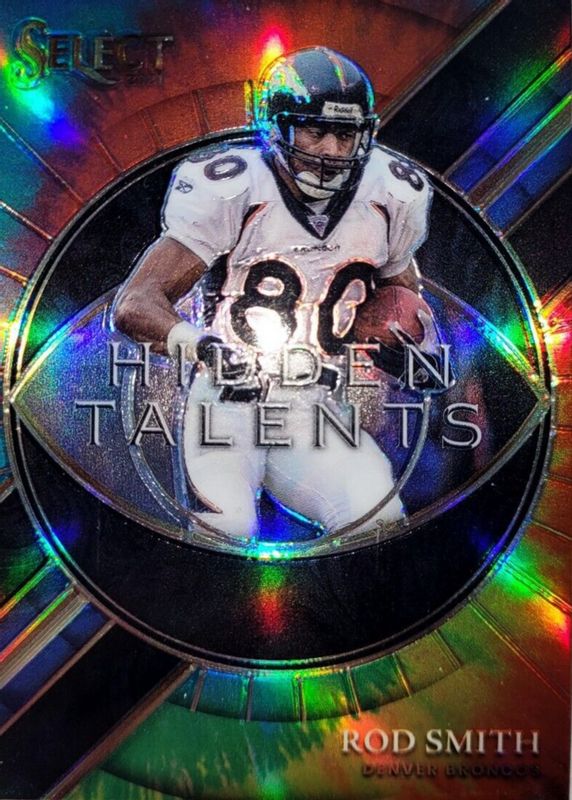 This card is 1 of 7 Rod Smith's card variations in the 2021 Select set being tracked by Sports Card Investor, including Hidden Talents - Silver, Hidden Talents - Zebra /(SSP), Hidden Talents - Gold /10, Hidden Talents - Green /5, and Hidden Talents - Green & Black Snakeskin /2.