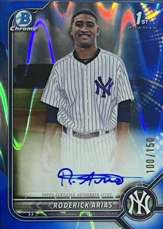 2022 1st Bowman Chrome Auto Roderick Arias Blue RayWave Refractor /150 Yankees