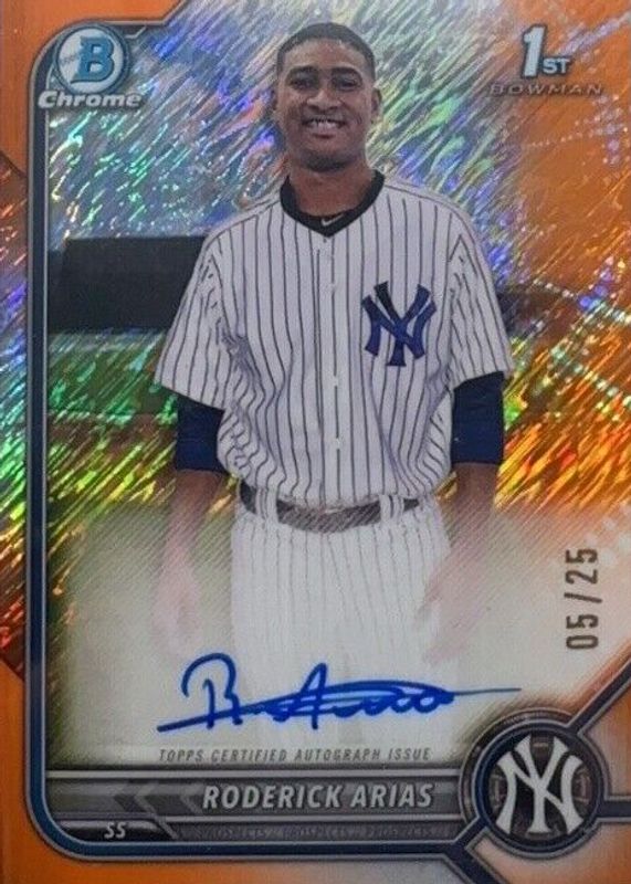 Roderick Arias 2022 Bowman Chrome #CPA-RA Prospect Auto - Orange Shimmer Refractor /25 (1st) RAW Price Guide
