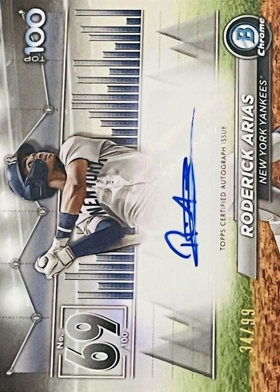 2024 Bowman Chrome RODERICK ARIAS Bowman Scouts Top 100 Auto #d 14/99 NY Yankees