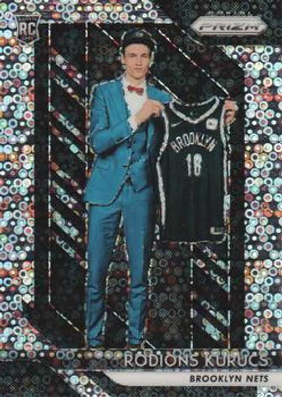The Rodions Kurucs 2018 Prizm #188 Fast Break Rookie card is 1 of 34 Rodions Kurucs' card variations in the 2018 Prizm set being tracked by Sports Card Investor, including Base, Choice Blue Yellow Green, Green, Hyper, and Red Ice.