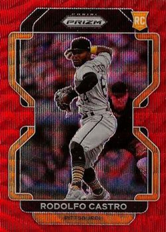 The Rodolfo Castro 2022 Prizm #64 Red Wave /99 Rookie card is 1 of 64 Rodolfo Castro's card variations in the 2022 Prizm set being tracked by Sports Card Investor, including Base, Blue, Blue Velocity, Carolina Blue, and Cosmic Haze.