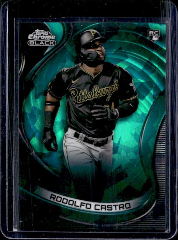 The Rodolfo Castro 2022 Topps Chrome Black #44 Green Atomic Refractor /99 Rookie card is 1 of 20 Rodolfo Castro's card variations in the 2022 Topps Chrome Black set being tracked by Sports Card Investor, including Base, Refractor /199, Purple Mini Diamond Refractor /150, Green Refractor /99, and Blue Refractor /75.