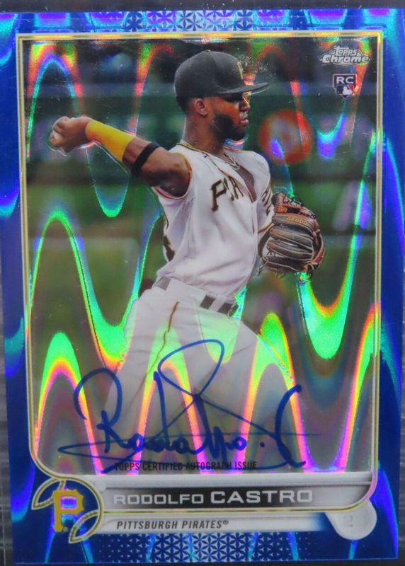 RODOLFO CASTRO 2022 TOPPS CHROME RAYWAVE BLUE REFRACTOR ROOKIE AUTO /150 PIRATES
