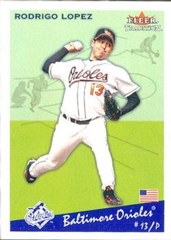 The Rodrigo Lopez 2002 Fleer Tradition Update #U144 Base card is 1 of 2 Rodrigo Lopez's card variations in the 2002 Fleer Tradition Update set being tracked by Sports Card Investor, including Glossy /200.
