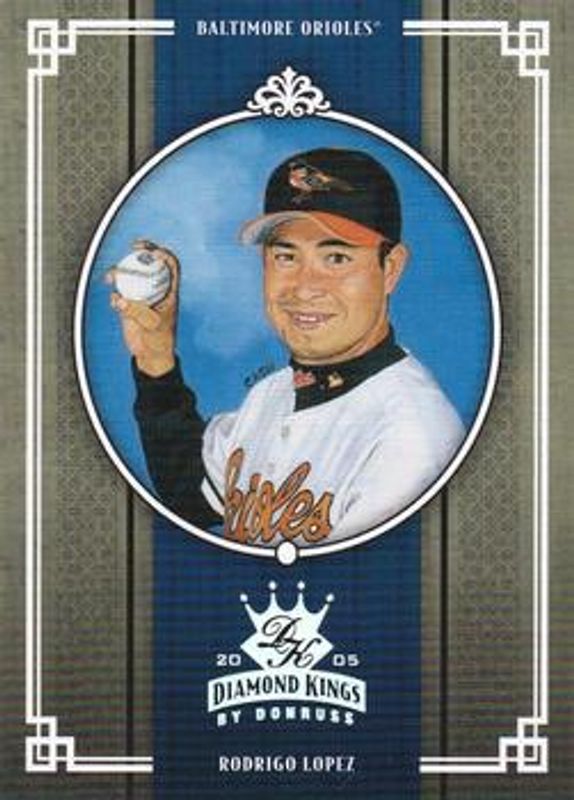 The Rodrigo Lopez 2005 Diamond Kings #32 Silver /25 card is 1 of 53 Rodrigo Lopez's card variations in the 2005 Diamond Kings set being tracked by Sports Card Investor, including Base, Framed Red, Non Canvas, Framed Blue /100, and Bronze /50.
