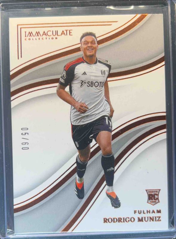 The Rodrigo Muniz 2023 Immaculate #170 Base /60 card is 1 of 6 Rodrigo Muniz's card variations in the 2023 Immaculate set being tracked by Sports Card Investor, including Silver /40, Sapphire /25, Ruby /19, Gold /10, and Platinum /1.