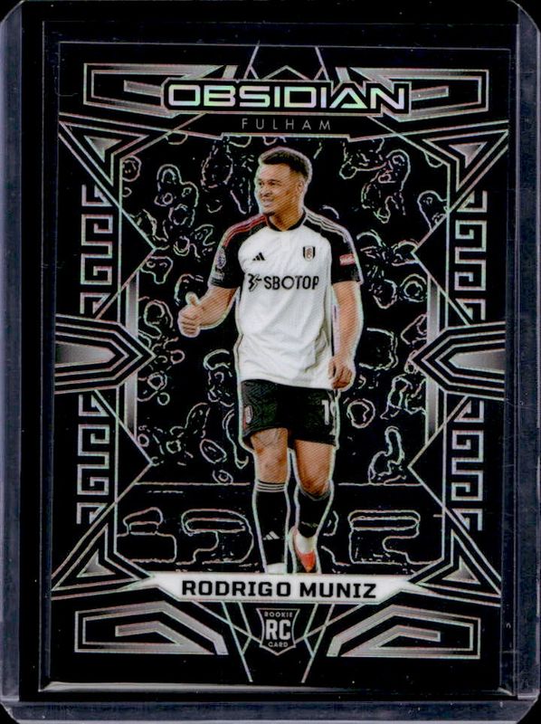 The Rodrigo Muniz 2023 Obsidian #58 Base /120 card is 1 of 14 Rodrigo Muniz's card variations in the 2023 Obsidian set being tracked by Sports Card Investor, including Electric Etch Red Pulsar /49, Electric Etch Orange /40, Electric Etch Red Crystals /30, Electric Etch Purple Flood /25, and Electric Etch Blue /20.