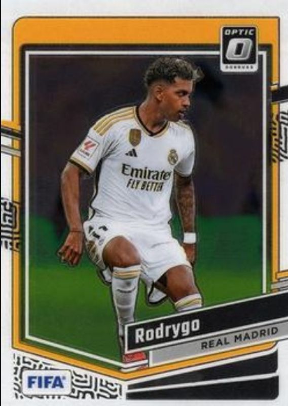 The Rodrygo 2023 Donruss #118 Optic card is 1 of 53 Rodrygo's card variations in the 2023 Donruss set being tracked by Sports Card Investor, including Base, Cubic, Diamond, Optic - Argyle, and Optic - Holo.