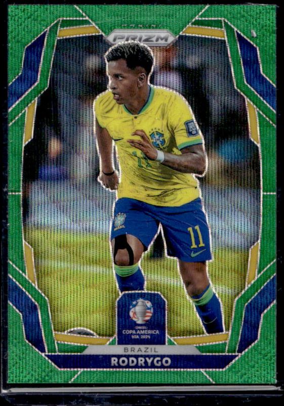 The Rodrygo 2024 Prizm Copa America #35 Green Wave card is 1 of 59 Rodrygo's card variations in the 2024 Prizm Copa America set being tracked by Sports Card Investor, including Base, Green Ice, Hyper, Ice, and Pink.