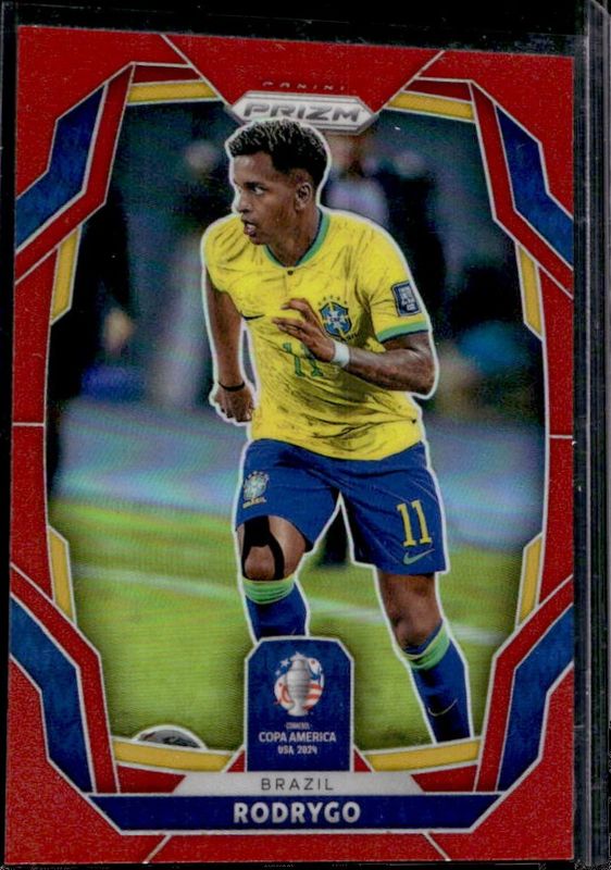 The Rodrygo 2024 Prizm Copa America #35 Red /199 card is 1 of 59 Rodrygo's card variations in the 2024 Prizm Copa America set being tracked by Sports Card Investor, including Base, Green Ice, Green Wave, Hyper, and Ice.
