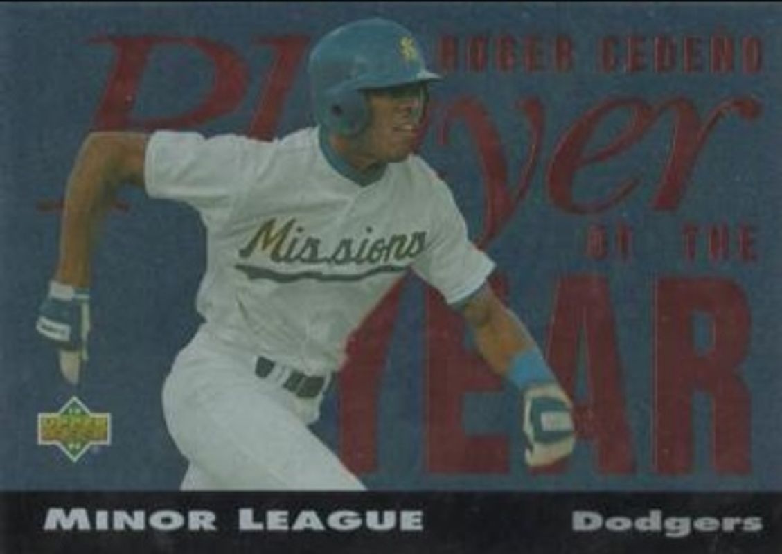 The Roger Cedeno 1994 Upper Deck Minor League #PY9 Player of the Year card is 1 of 5 Roger Cedeno's card variations in the 1994 Upper Deck Minor League set being tracked by Sports Card Investor, including #25 Base, #257 Base, #1 Top 10 Prospects, and #TP1 Top 10 Prospects Jumbo.