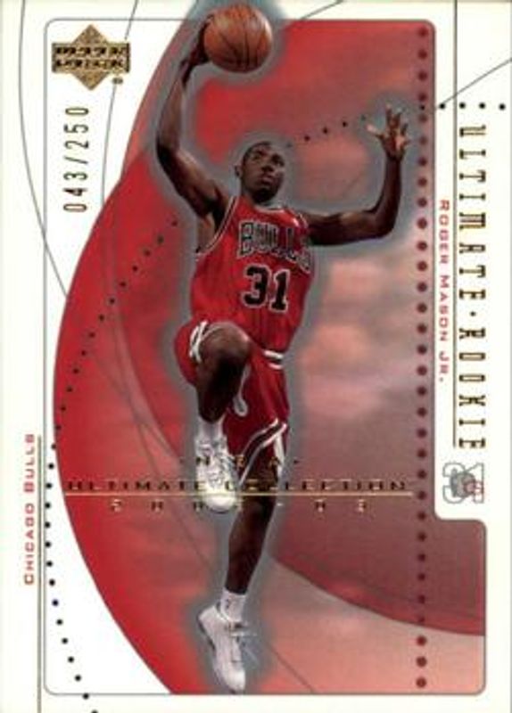 The Roger Mason Jr. 2002 Upper Deck Ultimate Collection #89 Base /250 card is 1 of 5 Roger Mason Jr.'s card variations in the 2002 Upper Deck Ultimate Collection set being tracked by Sports Card Investor, including Ultimate Parallel /25, Game Jersey Patch /50, Jerseys Patches Silver /15, and Jerseys Patches Gold /10.