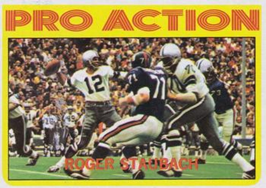 The Roger Staubach 1972 Topps #122 Base Rookie card is 1 of 3 Roger Staubach's card variations in the 1972 Topps set being tracked by Sports Card Investor, including Base, and In Action.
