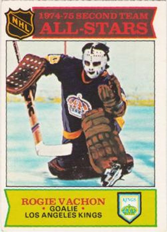 The Rogie Vachon 1975 O-Pee-Chee #297 Base card is 1 of 2 Rogie Vachon's card variations in the 1975 O-Pee-Chee set being tracked by Sports Card Investor, including Base.