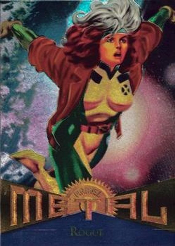 The Rogue 1995 Marvel Metal #114 Base card is 1 of 6 Rogue's card variations in the 1995 Marvel Metal set being tracked by Sports Card Investor, including #132 Base, #114 Silver Flasher, #132 Silver Flasher, #10 Gold Blasters, and #10 Metal Blasters.