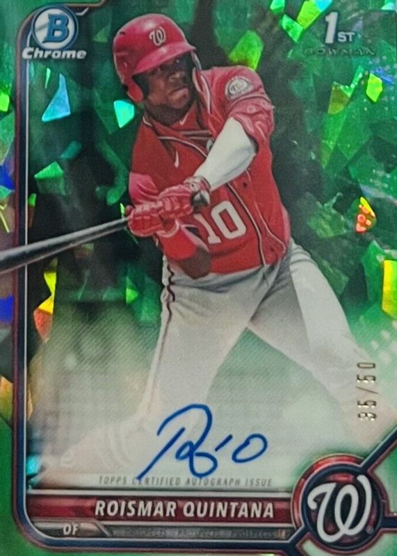 2022 Bowman Sapphire 1st Roismar Quintana Green /50 Auto and Base Washington