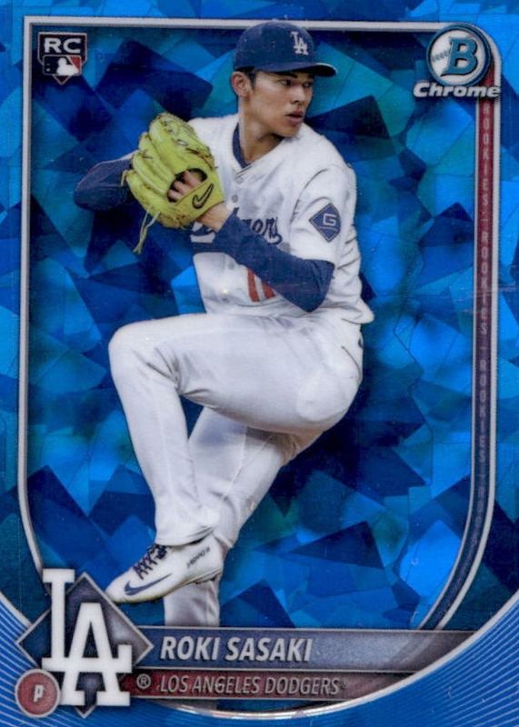 The Roki Sasaki 2025 Bowman Chrome Sapphire Edition #12 Base Rookie card in Raw condition has moved down -$5.50 (-22.0%) in the last 30 days and was last sold for $19.50 .