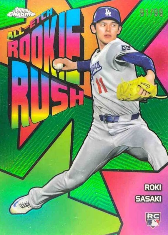 2025 Topps Chrome Roki Sasaki All-Etch RC Rush Green Refractor 91/99 Dodgers