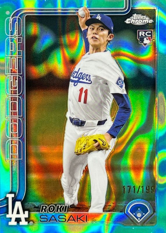 Roki Sasaki RC #217 2025 Topps Chrome AQUA LAVA Refractor /199 Dodgers SP Chiba