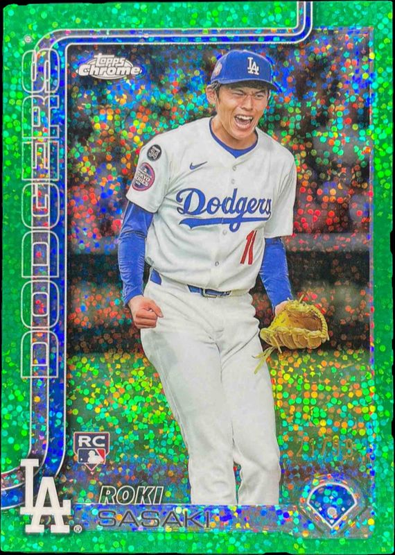 Roki Sasaki 2025 Topps Chrome #217 Base Image Variation - Green Speckle Refractor /99 Rookie RAW Price Guide