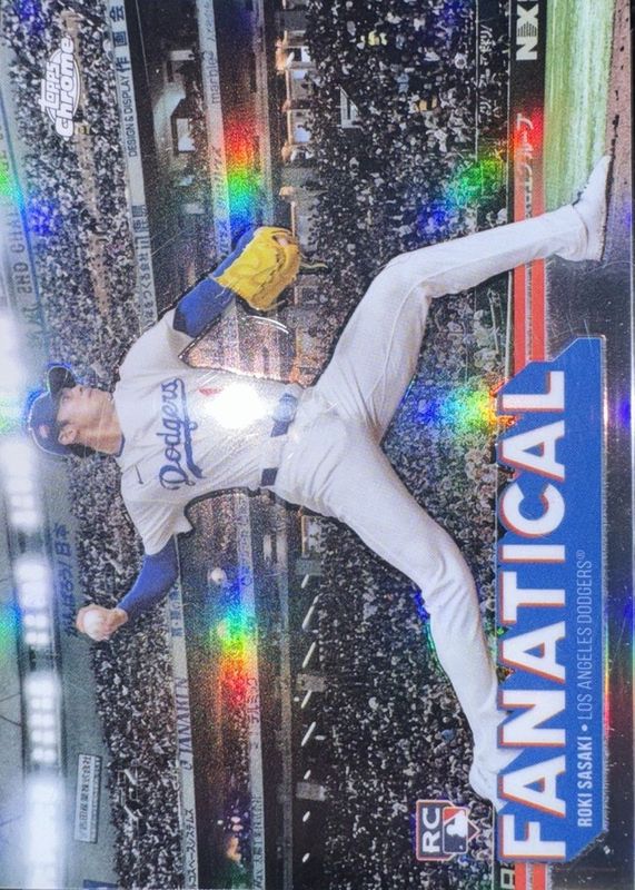 The Roki Sasaki 2025 Topps Chrome #FAN-21 Fanatical /(SSP) Rookie card in Raw condition has moved up $11.50 (+48.9%) in the last 30 days and was last sold for $35.00 .