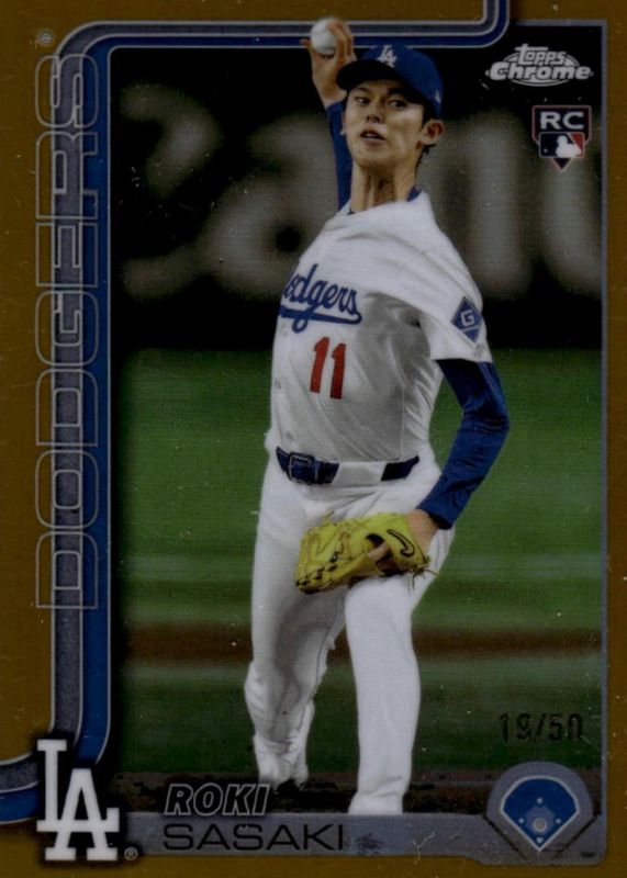 Recent Sales of Roki Sasaki 2025 Topps Chrome #217 Gold Refractor /50 Rookie Raw