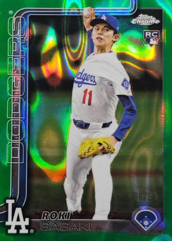 2025 Topps Chrome Green Lava #217 Roki Sasaki Dodgers RC Rookie 90/99