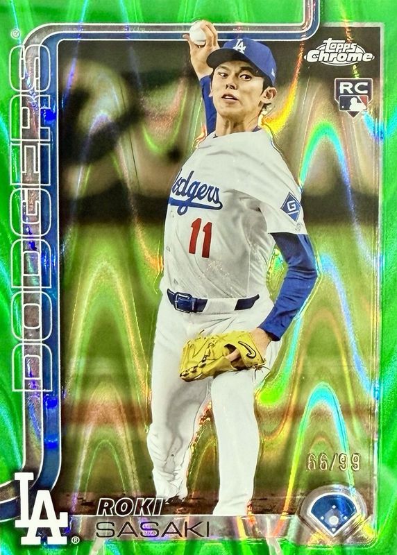 Recent Sales of Roki Sasaki 2025 Topps Chrome #217 Green RayWave Refractor /99 Rookie Raw