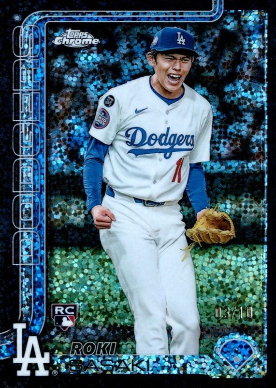 Recent Sales of Roki Sasaki 2025 Topps Chrome #217 Image Variation - Black Speckle Refractor /10 Rookie Raw