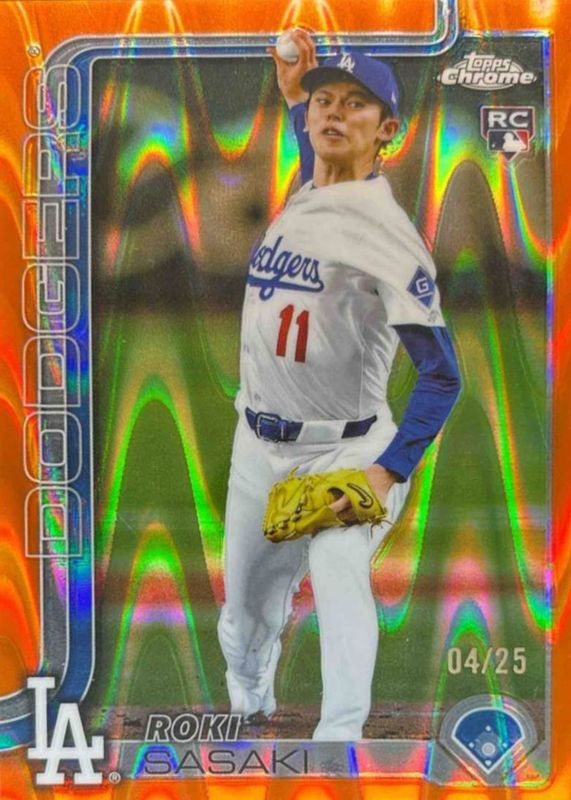 Recent Sales of Roki Sasaki 2025 Topps Chrome #217 Orange RayWave Refractor /25 Rookie Raw