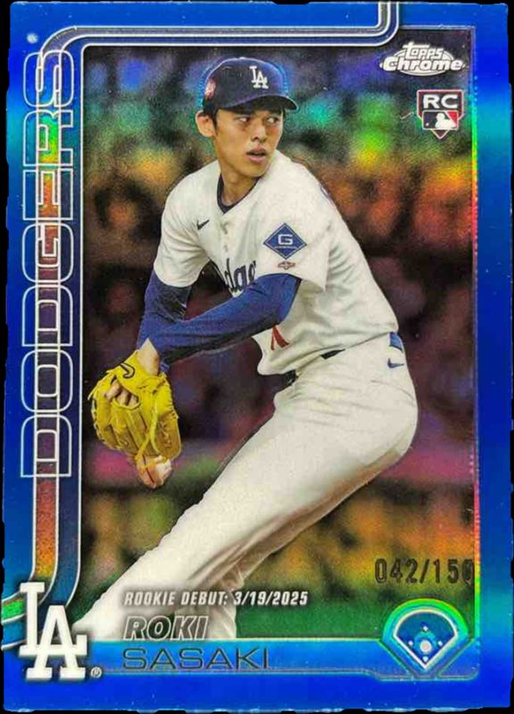 Roki Sasaki 2025 Topps Chrome Update #USC73 Blue Refractor /150 Rookie RAW Price Guide