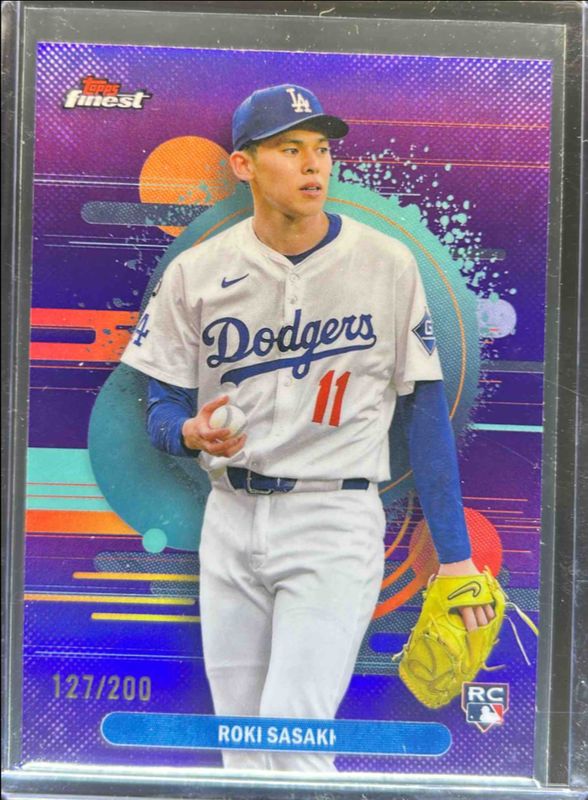 The Roki Sasaki 2025 Topps Finest #116 Base Uncommon - Purple Refractor /200 Rookie card is 1 of 154 Roki Sasaki's card variations in the 2025 Topps Finest set being tracked by Sports Card Investor, including Common, Rare, Uncommon, Common - Checkerboard Refractor, and Common - Refractor.
