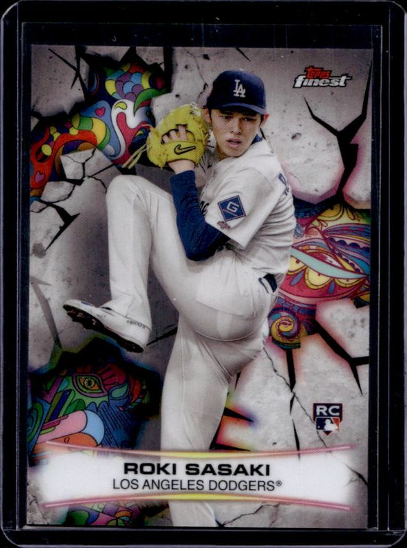 The Roki Sasaki 2025 Topps Finest #S-18 Smashing Through Rookie card is 1 of 154 Roki Sasaki's card variations in the 2025 Topps Finest set being tracked by Sports Card Investor, including Common, Rare, Uncommon, Common - Checkerboard Refractor, and Common - Refractor.