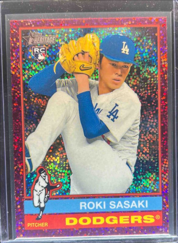 The Roki Sasaki 2025 Topps Heritage #224 Chrome - Pink Sparkle Refractor Rookie card in Raw condition has moved up $6.00 (+50.0%) in the last 30 days and was last sold for $18.00 .