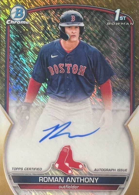Auctions Ending Soon for Roman Anthony 2023 Bowman #CPA-RA Chrome Prospect Auto - Gold Refractor /50 (1st) RAW
