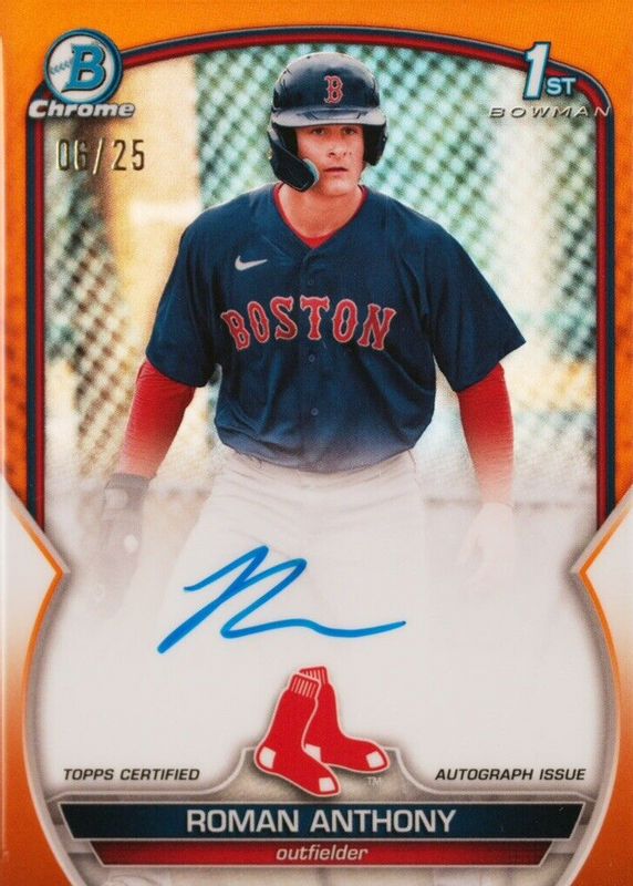 Auctions Ending Soon for Roman Anthony 2023 Bowman #CPA-RA Chrome Prospect Auto - Orange Refractor /25 (1st) RAW