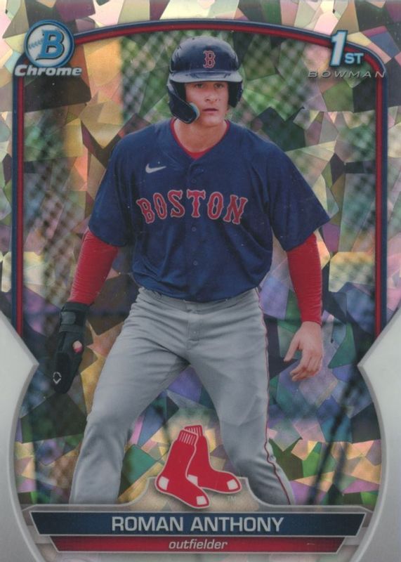 This card is 1 of 49 Roman Anthony's card variations in the 2023 Bowman set being tracked by Sports Card Investor, including Chrome Prospects (1st), Chrome Prospects - Lunar Glow Refractor (1st), Chrome Prospects - Pearl Refractor (1st), Chrome Prospects - Refractor /499 (1st), and Chrome Prospects - Lava Refractor /399 (1st).