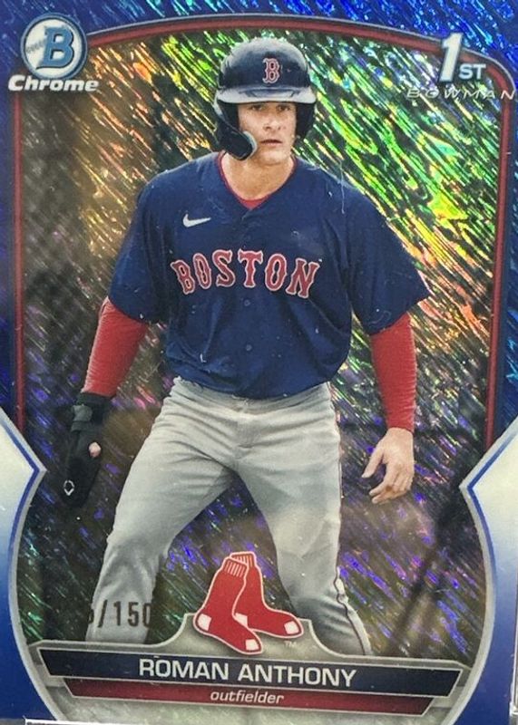 Best Prices Available For Sale of Roman Anthony 2023 Bowman #BCP-71 Chrome Prospects - Blue Shimmer Refractor /150 (1st)