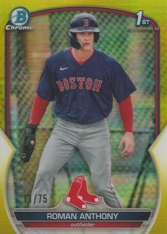 Roman Anthony 2023 Bowman #BCP-71 Chrome Prospects - Yellow Refractor /75 (1st) RAW Price Guide