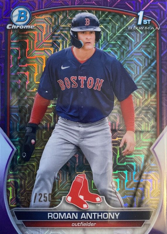 Best Prices Available For Sale of Roman Anthony 2023 Bowman Mega Box #BCP-71 Chrome Prospects - Purple Mojo Refractor /250 (1st)