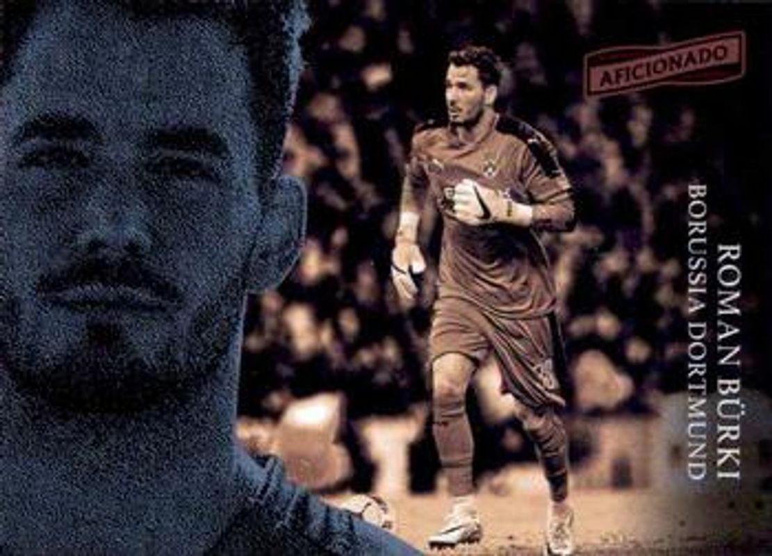 The Roman Burki 2016 Aficionado #111 Base card is 1 of 6 Roman Burki's card variations in the 2016 Aficionado set being tracked by Sports Card Investor, including Artist's Proof, First Kick, Artist's Proof Red /99, Artist's Proof Bronze /49, and Artist's Proof Gold /1.