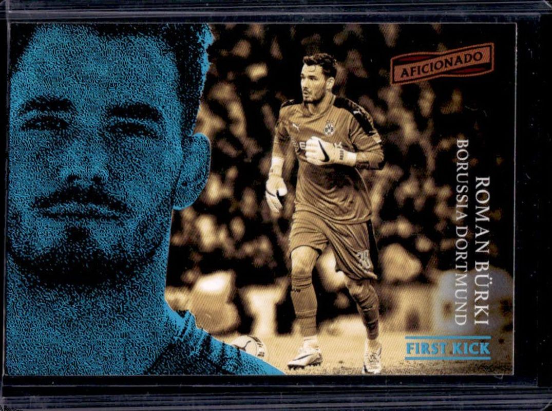 The Roman Burki 2016 Aficionado #111 First Kick card is 1 of 6 Roman Burki's card variations in the 2016 Aficionado set being tracked by Sports Card Investor, including Base, Artist's Proof, Artist's Proof Red /99, Artist's Proof Bronze /49, and Artist's Proof Gold /1.