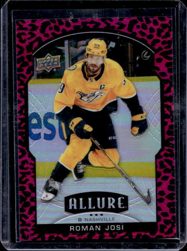 The Roman Josi 2020 Upper Deck Allure #19 Pink Leopard card is 1 of 40 Roman Josi's card variations in the 2020 Upper Deck Allure set being tracked by Sports Card Investor, including Base, 2005 Shield, Black Rainbow, Blue China, and Leopard.