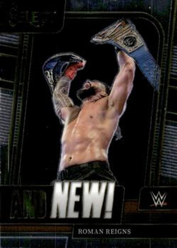 The Roman Reigns 2023 Select WWE #6 And New! card is 1 of 107 Roman Reigns' card variations in the 2023 Select WWE set being tracked by Sports Card Investor, including #44 Base, #346 Base, #215 Base, #125 Base, and #215 Orange Flash.