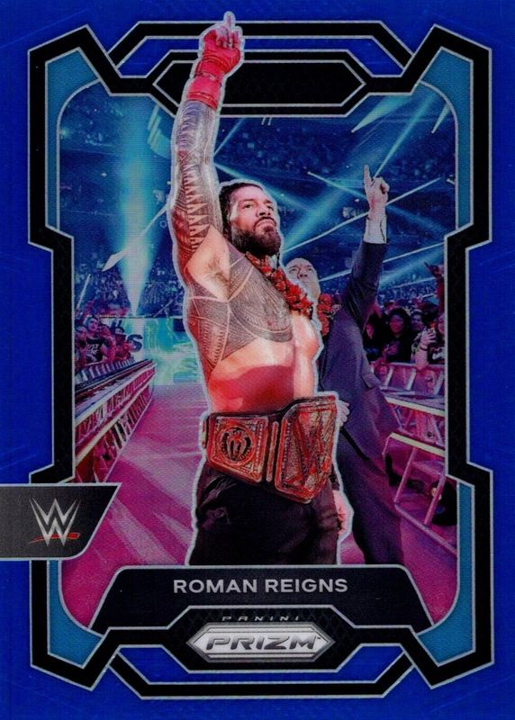 The Roman Reigns 2024 Prizm WWE #191 Blue /199 card in Raw condition has not changed in price in the last 30 days and was last sold for $23.54 .