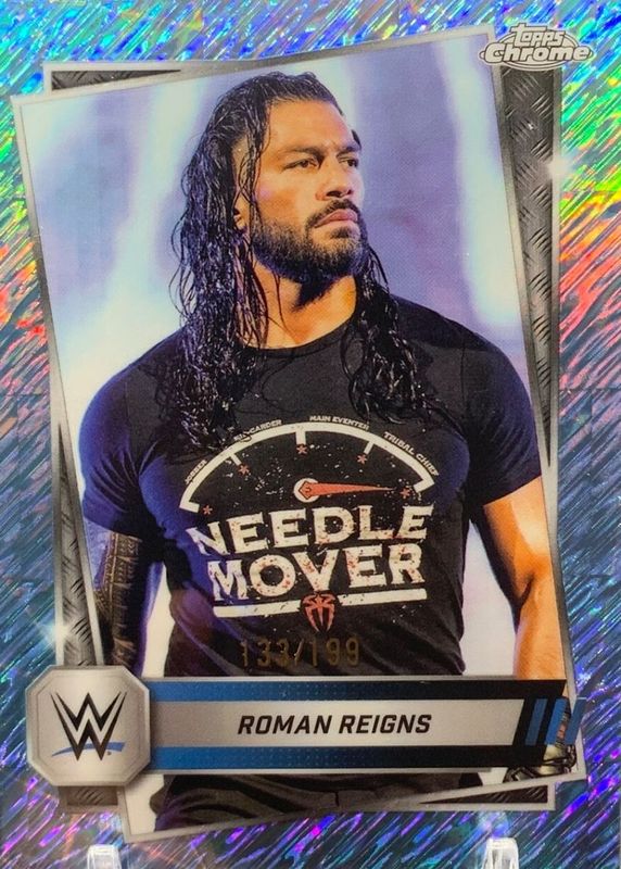 2025 Topps Chrome WWE Aqua Shimmer Refractor Roman Reigns 5/199 #3