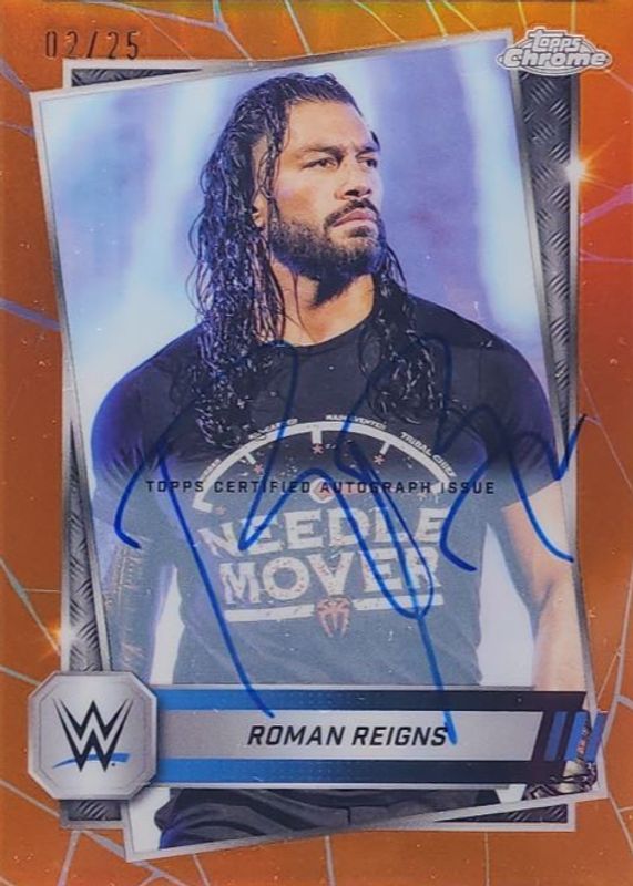 2025 Topps Chrome WWE Base Autograph Orange Refractor Roman Reigns /25 EXCH