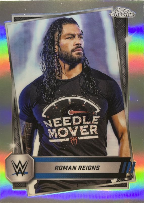 The Roman Reigns 2025 Topps Chrome WWE #3 Refractor card is 1 of 84 Roman Reigns' card variations in the 2025 Topps Chrome WWE set being tracked by Sports Card Investor, including Base, Black & Gold Refractor, Geometric Refractor, Neon Green & Black Refractor, and Pink Shimmer Refractor.